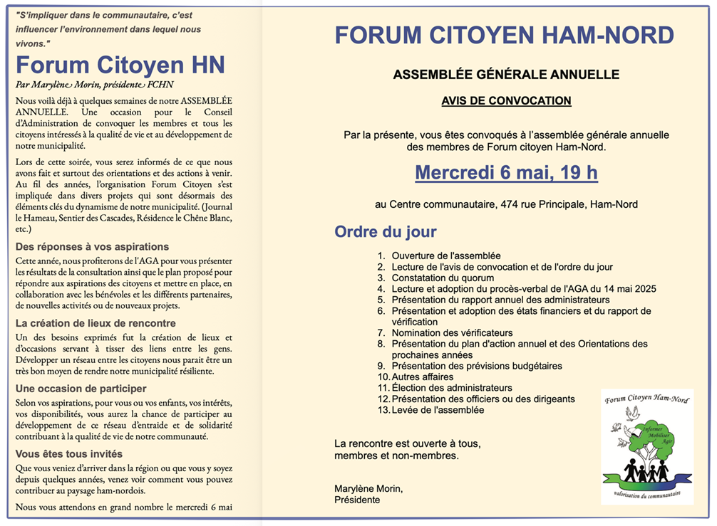 Convocation AGA 2026 Forum Citoyen Ham-Nord