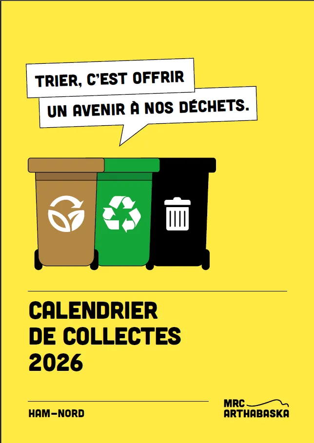 Collectes des matières résiduellesAfficheVignette Calendrier Collecte 2026 Calendrier Collecte 2025Catégorie Communauté Gestion des matières résiduelles MunicipalitéSous-titreOrganisation municipale Lundi 8 décembre 2025 - 13:57