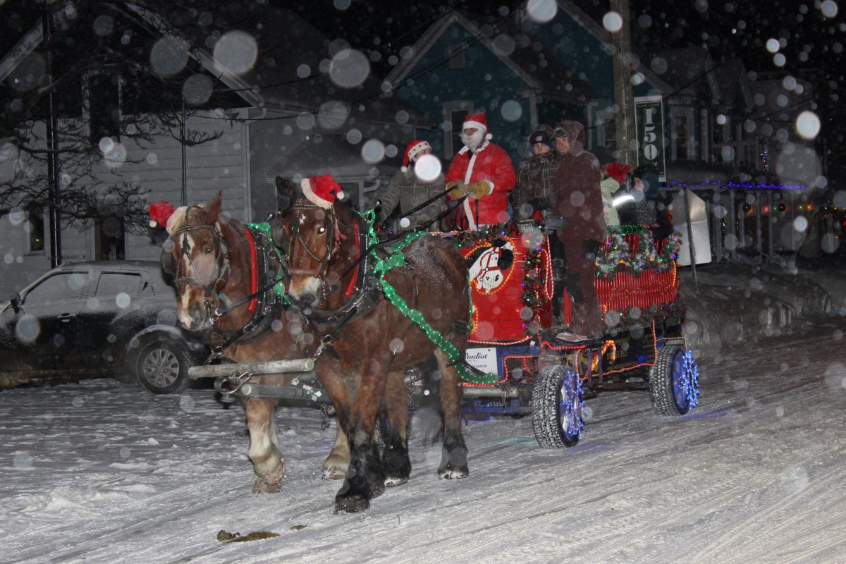 Quelle belle soirée sous la neige, c’était féérique. Le « sleighride » musical avec Donald et les tours de carrioles avec Marquis, Richard, Jeannot et Léo nous ont charmés. Les petits feux de bois avec Jules et Gaston pour se réchauffer la « couenne » étaient fort appréciés et les petites boissons chaudes à Louise aussi (un p’tit gin chaud miel et citron, ça se prend bien). Les petits n’ont pas été en reste : chocolats chauds, cadeaux et bonbonnières avec notre beau Père Noël et ses lutins.