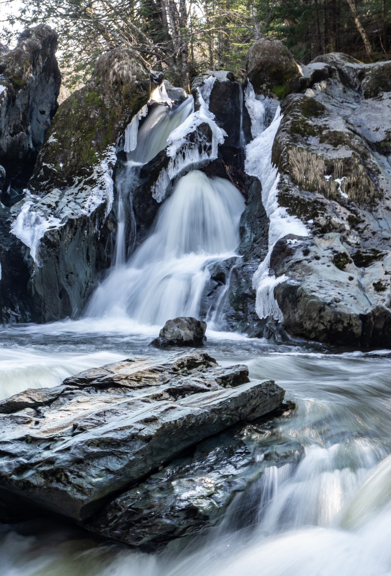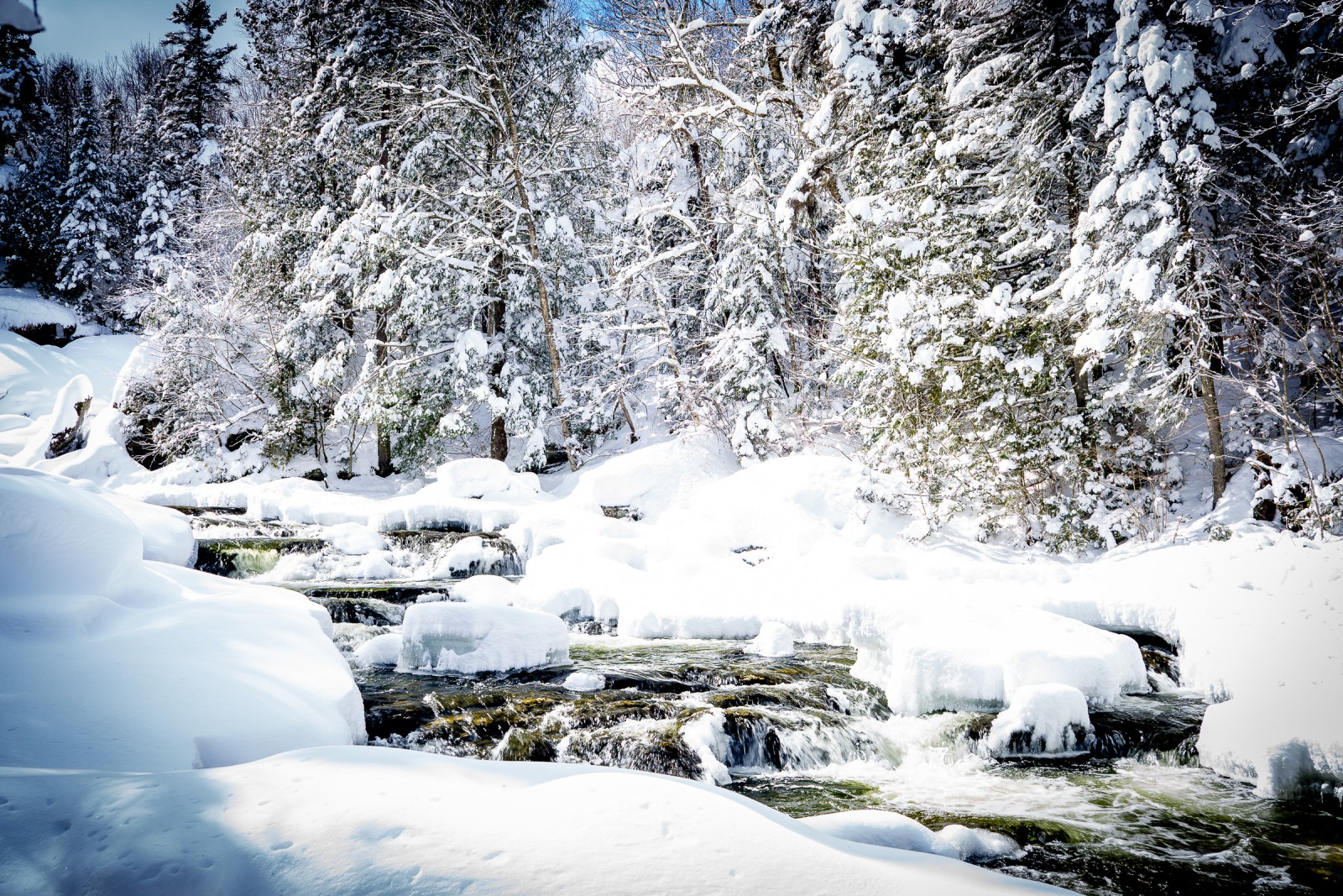 Le Sentier des cascades serpente les sous-bois pour se rendre en bordure de rivière où vous trouverez des aires de pique-nique ainsi que plusieurs panneaux d’interprétation sur la géologie et la flore environnante. La randonnée s'agrémente de cascades, de marmites, de formations rocheuses et de chutes, dont certaines sont assez spectaculaires. Les sentiers sont accessibles à pied l'été et en raquette l'hiver.